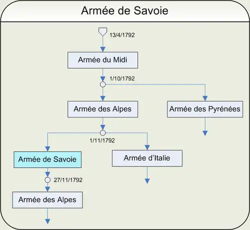 - Cette armée est créée par arrêté du Conseil exécutif du séparant l'armée des Alpes en armée de Savoie et armée d'Italie