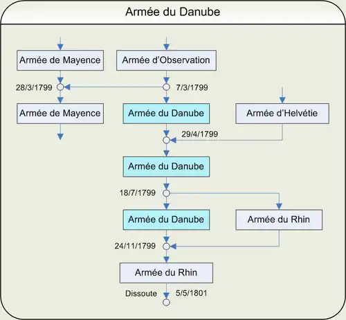 - Par arrêté du (3 frimaire an VIII), les armées du Rhin et du Danube sont réunies en une seule sous la dénomination d'armée du Rhin.