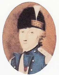 Portrait d'Armand Tuffin de La Rouërie, huile sur toile de Charles Willson Peale, 1783, Philadelphia History Museum at the Atwater Kent[Note 1]. | ||