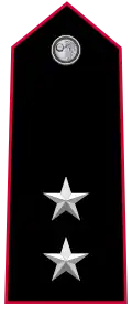 Notes: 2 La fonction de "vice-comandante generale dell'Arma" (vice-commandant général de l'Arme) est attribuée exclusivement à l’officier "generale di corpo d'armata" (général de corps d'armée) des carabiniers. | ||||||||||||
