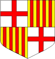 Il est ainsi normal de blasonner, sur ce modèle, « écartelé, au premier et quatrième d’argent à la croix de gueules (croix de saint Georges), au second et troisième d’or à quatre pals de gueules (Aragon), qui est de Barcelone ».