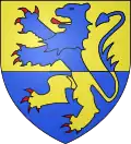 Coupé d'or et d'azur, au lion de l'un en l'autre armé et lampassé de gueules[31]. |