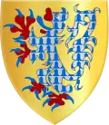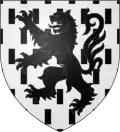 D'azur semé de fleurs de lys d'or à la bordure de gueules chargée au franc quartier d'un lion d'argent. |