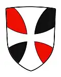 De gueules à la croix d'argent brisé d'un lambel d'azur en chef[1]. |