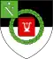 D'argent, à une couronne de feuillage de sinople, liée en bas de deux rubans de gueules, au chef de gueules, semé d'étoiles d'argent.[6],[7] |
