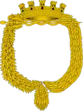Écartelé: au 1, des comtes sénateurs du Royaume ; au 2, de pourpre losangé d'argent ; au 3, d'azur au plant d'olivier d'argent ; au 4, de sinople, à deux barres d'argent.[15] |