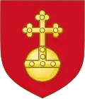 d'or, à l'aigle de sable, membrée, becquée et liée de gueules ; écartelé en 1 et 4 fuselé en bande d'azur et d'argent et en 2 et 3 de sable, au lion d'or, armé, lampassé et couronné de gueules, sur le tout de gueules à l'orbe crucifère d'or[4]. |