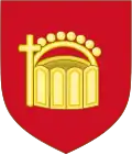 d'azur à la croix alésée d'argent, sur le tout fuselé en bande d'azur et d'argent[16]. |