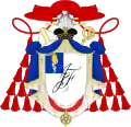Écu avec un franc-quartier d'azur, chargé d'un miroir d'or où se mire un serpent d'argent chargé d'un chiffre aux initiales, avec les insignes de comte-Sénateur (toque, lambrequins) et d'archevêque (crosse, mitre, croix patriarcale) et le chapeau cardinalice, grand aigle de la Légion d'honneur le 13 pluviôse an XIII[14] |