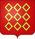 De gueules à neuf macles d'or, posées 3, 3, 3, et au lambel d'argent[15]. |