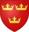 Armes : D'azur à treize couronnes d'or, 4, 4, 4 et 1.[22] Cimier : un dragon de sinople, lampassé de gueules, issant d'une couronne d'or. Supports : deux lévriers rampants d'argent, colletés de gueules. Devise : PENDRAGON TESTE DE DRAGON Variantes :