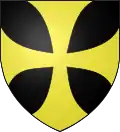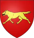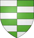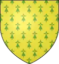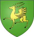 Armes : D'or au griffon de sinople armé, becqué et membré d'argent[20]. Cimier : un griffon issant de sinople, becqué d'or. Supports : deux griffons de sinople, becqués d'or. Devise : A TOVTES BESTES CLOC Variantes : Griffon passant. Griffon couard. ![]()
