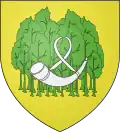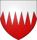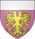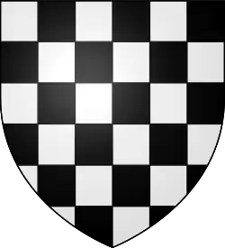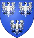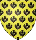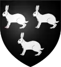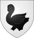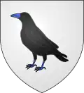 Armes : D'argent au vol renversé de sable[13]. Cimier : un vol de sable. Supports : deux loups marins au naturel. Devise : TOVT POVR LA VIE Variante : vol non renversé.![]() | |