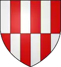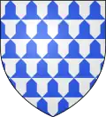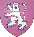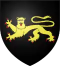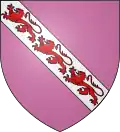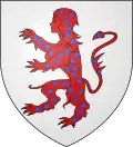 Armes : De pourpre semé de croisettes d'or, au léopard d'argent armé et lampassé de gueules brochant sur le tout[5]. Cimier : une tête de léopard d'argent, lampassée de gueules. Supports : deux léopards d'argent, armés et lampassés de gueules. Devise : DE GALLES DE GALLES Variantes : De pourpre semé de billettes d'or. Léopard non lampassé. ![]()