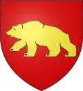 Armes : De sable à un rais d'escarboucle d'or[3]. Cimier : un rais d'escarboucle d'or. Supports : deux ours de sable. Devise : HORS DV DÉSERT |