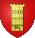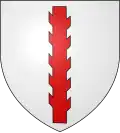 Armes : De gueules à la fasce coupée-crénelée d'or et de sable[9]. Cimier : une tête de "clyens" d'argent. Supports : deux "clyens" barbés d'argent. Devise : MONS OV VALS | |