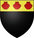Armes : De sable semé de coquilles alternées d'or et d'argent[19]. Cimier : une coquille d'or/ Supports : deux hommes noirs nus de sable. Devise : BOVRDONS ET COQVILLES | |