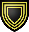 Armes : De sable à un cavalier en armes d'or tenant une hache de sinople emmanchée de gueules[15]. Cimier : un bras armé d'or tenant un poignard de sable. Supports : deux hommes d'armes d'or, tenant une hallebarde de sinople emmanchée de gueules. Devise : NORGALLES NORGALLES Variantes : La hache n'est pas emmanchée. Hache absente. Le cavalier est remplacé par un soldat à pied. ![]() ![]() | |