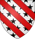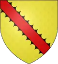 Armes : D'or à trois cotices de sable en bande[17]. Cimier : un écureuil accroupi au naturel. Supports : deux jeunes filles nues au naturel. Devise : ET TOVT POVR ELLE Variante : les cotices sont posées en fasces. ![]() | |