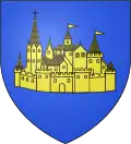 Armes : D'or à un taureau de gueules accorné, ancorné et lampassé d'azur[16]. Cimier : une rencontre de taureau de gueules, lampassé d'azur. Supports : deux taureaux furieux de gueules, accornés, ancornés et lampassés d'azur. Devise : SANS PLVS AVANT Variante : le taureau n'est pas lampassé. ![]() | |