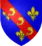 Parti : au 1 d'azur à trois fleurs de lys d'or, au 2 d’or au dauphin d’azur, crêté, barbé, loré, peautré et oreillé de gueules, qui est du Dauphiné. |