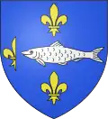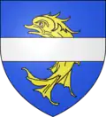 D'azur au poisson d'argent posé en fasce, accompagné de trois fleurs de lys d'or, une en chef, une en pointe, et une à dextre à la tête du poisson, cette dernière défaillante à senestre.
