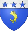 D'azur au dauphin d'argent couronné d'or, au chef d'argent chargé de trois mouchetures d'hermine. |