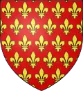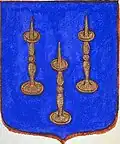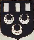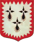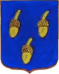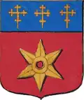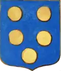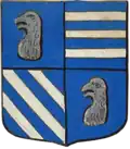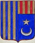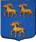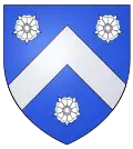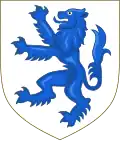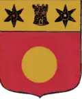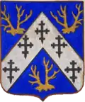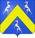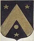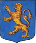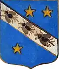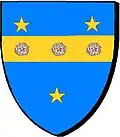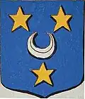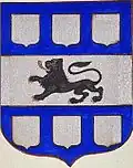 D'azur au lion d'argent ; au chef d'or, chargé de trois étoiles de gueules.[16],[17] |