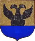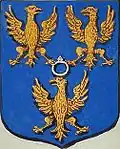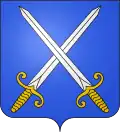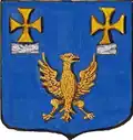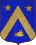 D'azur à un vol d'argent, surmonté de deux étoiles d'or. |
