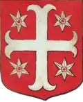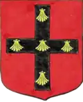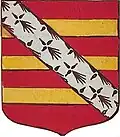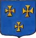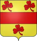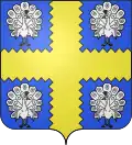 D'or à la croix treflée de sinople ; écartelé d'or au lion de gueules, sur le tout de gueules à deux pals d'or, chargés d'une fasce d'azur, fur chargée de trois losanges d'argent.