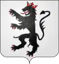 D'argent au lion de sable, la queue fourchée passée en sautoir, chargé d'une étoile d'or sur l'épaule. |