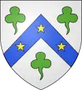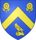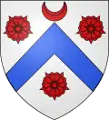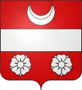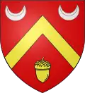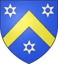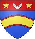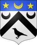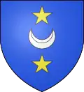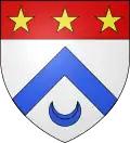 D'or au chevron de sable, accompagné en chef de trois étoiles rangées d'azur, et en pointe d'un croissant de gueules.[19] |