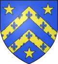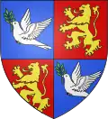 Écartelé : aux 1 et 4 d'azur à quatre chaînes d'argent posées en sautoir, mouvantes d'un annelet d'argent en abîme et aboutissantes dans les angles du quartier ; aux 2 et 3 d'or au lion de gueules, armé, lampassé et couronné d'azur ; sur le tout, d'or au pal de gueules, chargé de trois chevrons d'argent.[13] Île-de-France, ANF 29/05/1948. |