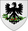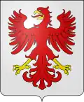D'argent à trois aigles de gueules, becquées et membrées d'azur.[25]