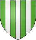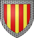 Écartelé, aux 1 et 4 d'azur au chien d'argent, aux 2 et 3 fascé d'argent et de gueules à la bande d'azur chargée de trois étoiles d'or.[17] Alias aux 1 et 4 le chien couché, aux 2 et 3 le fascé de quatre pièces, la bande d'or et les étoiles de sable.[18] Languedoc |