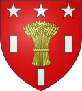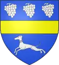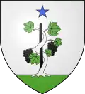 D'azur à trois étoiles d'argent rangées en fasce, accompagnées en chef d'un croissant du même et en pointe d'une grappe de raisin aussi d'argent, feuillée et tigée de sinople.[34] Périgord, ANF 28/05/1933. |