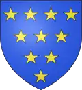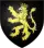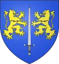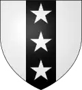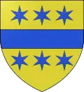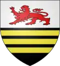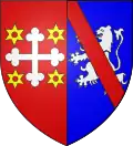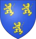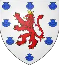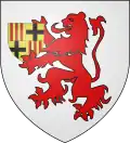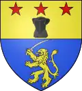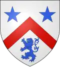 D'azur, au lion d'argent ; au chef d'or, chargé de trois étoiles de gueules.[33] |