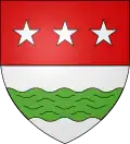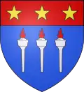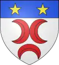 D'argent à trois croissants de gueules, les deux du chef adossés et celui en pointe renversé ; au chef d'azur chargé de deux étoiles d'or.[7] Dauphiné |
