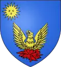 D'or à la bande de gueules, chargée de trois demi-vols d'argent et accompagnée de deux molettes de même ; au chef d'azur, chargé d'un soleil d'or.[32] Toulouse, ANF 10/06/1982. |