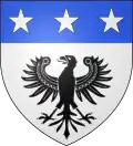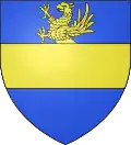 De sable au lion d'or, armé et lampassé et couronné de gueules ; à la fasce partie d'argent et d'azur, chargée de deux étoiles de l'un en l'autre brochant sur le tout.[19] Dauphiné |