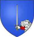 D'azur, à la bande d'or, chargée de trois mouchetures d'hermine de sable et accompagnée de deux croisettes d'or ; en chef, trois burelles ondées d'argent.[29] Auvergne, ANF 16/12/1954. |