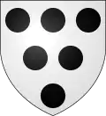 De gueules à cinq billettes couchées d'argent, rangées en pal.[3] |