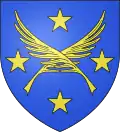D'azur au chevron d'argent accompagné de deux étoiles en chef et d'un croissant en pointe.[19]