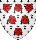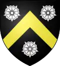 De gueules au chevron d'or, accompagné de trois roses d'argent.[7] |