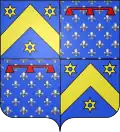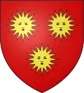 Burelé d'or et d'azur (de dix pièces), au chef du second, chargé de trois soleils du premier.[7],[15],[16] |