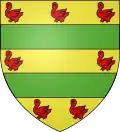 D'or, à 2 fasces de sinople, accompagnées de 7 merlettes de gueules en orle |
