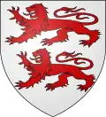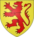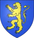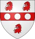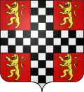 D'or, à la fasce échiquetée d’argent et de gueules de 3 tires, surmontée d’un lion naissant de gueules |