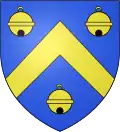 D'azur, au chevron d’argent, accompagné en pointe d’un besant d’or