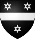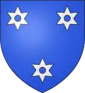 D'argent, à 3 merlettes de gueules ; au chef d’azur, chargé de 3 étoiles d’or