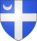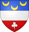 Coupé d’azur et de gueules, à la fasce d’argent sur le tout, soutenue d’un trèfle du même, et surmontée d’un croissant d’or